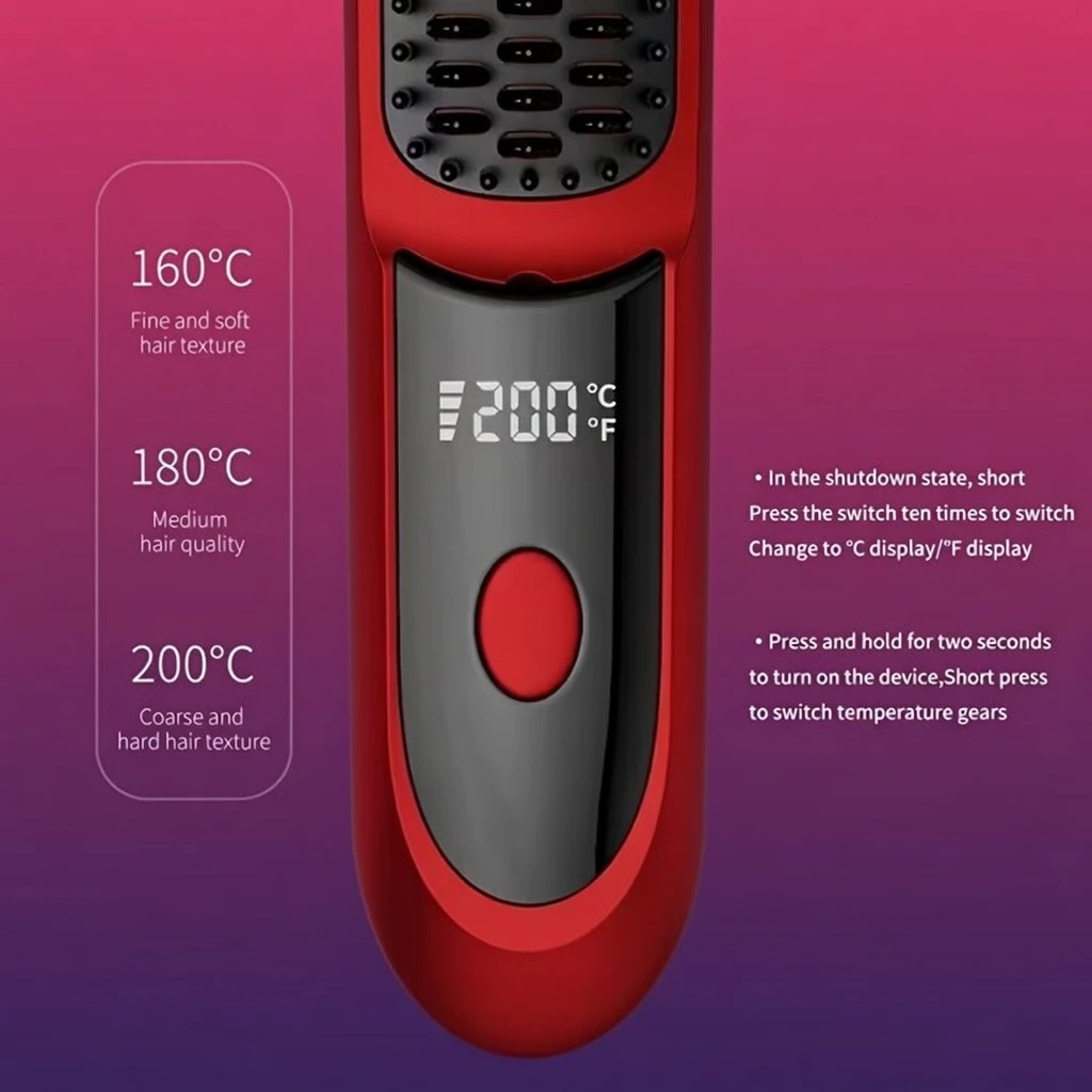 - Turn on the comb and select your preferred temperature (LED display shows settings).