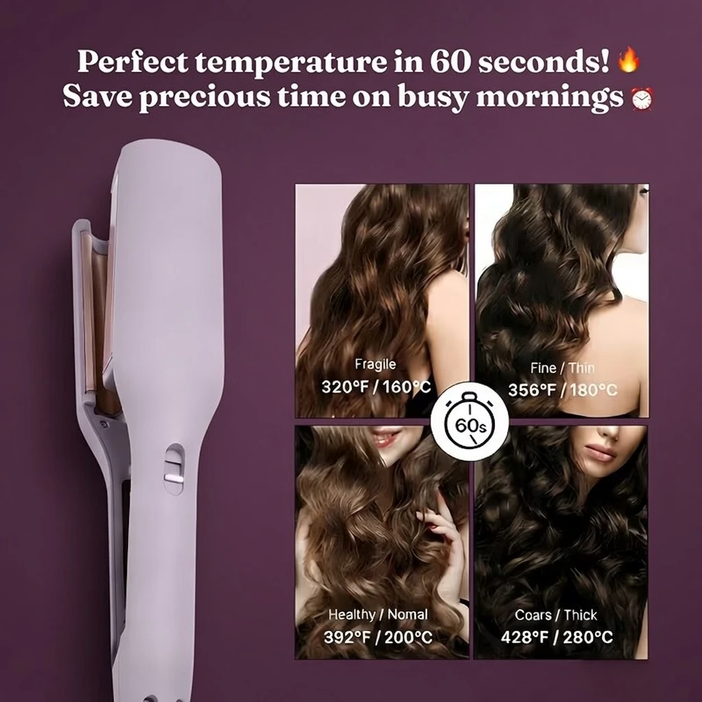 — Creates defined big waves & deep French egg-roll curls with just one clamp - no wrapping or twisting technique needed. - ⚡ 30-Second Rapid Heat-Up